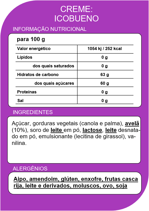 Creme / veteado com sabor a chocolate e avelã, pronto a usar. Ideal para decoração e confeção de gelados, decoração de crepes, waffles ou panquecas. Também pode ser utilizado como recheio.