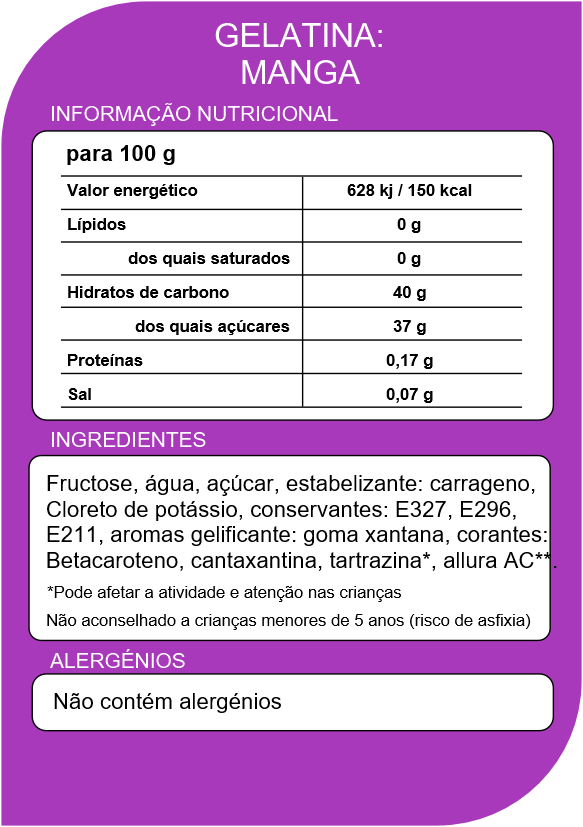 Pedaços de gelatina sabor a manga em forma de rectangulosTamanho da gelatina